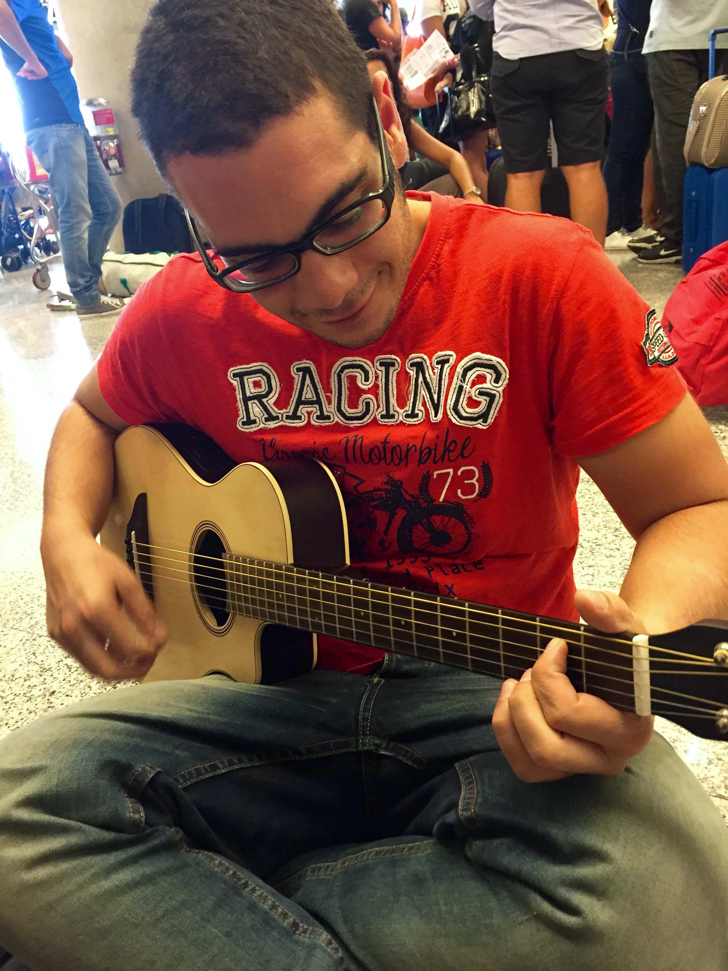 We’ll keep this post short and sweet. Our encounter with Victor was not only totally random, but incredibly short-lived. We met Victor at the airport in Palma de Mallorca while we were both waiting for a flight that had delayed for almost 5 hours. While waiting for more information on our travel delays, Victor spotted the guitar I had strapped to my backpack. He spoke very little English, but simply pointed to my guitar and just kept saying “please, please, please”. I couldn’t refuse letting him play a few chords, as we were all looking for a way to pass the time. I did learn that he was from Catania, the second largest city in Sicily, and he was looking for a way to bum a cigarette (unfortunately for him, we don’t smoke). Other than that, I just let him play for a few minutes, and then he went on his way. He was very grateful. While we didn’t get to learn much about each other, I felt that it was a nice moment of our travels worth mentioning; proving that music really is “the universal language”.